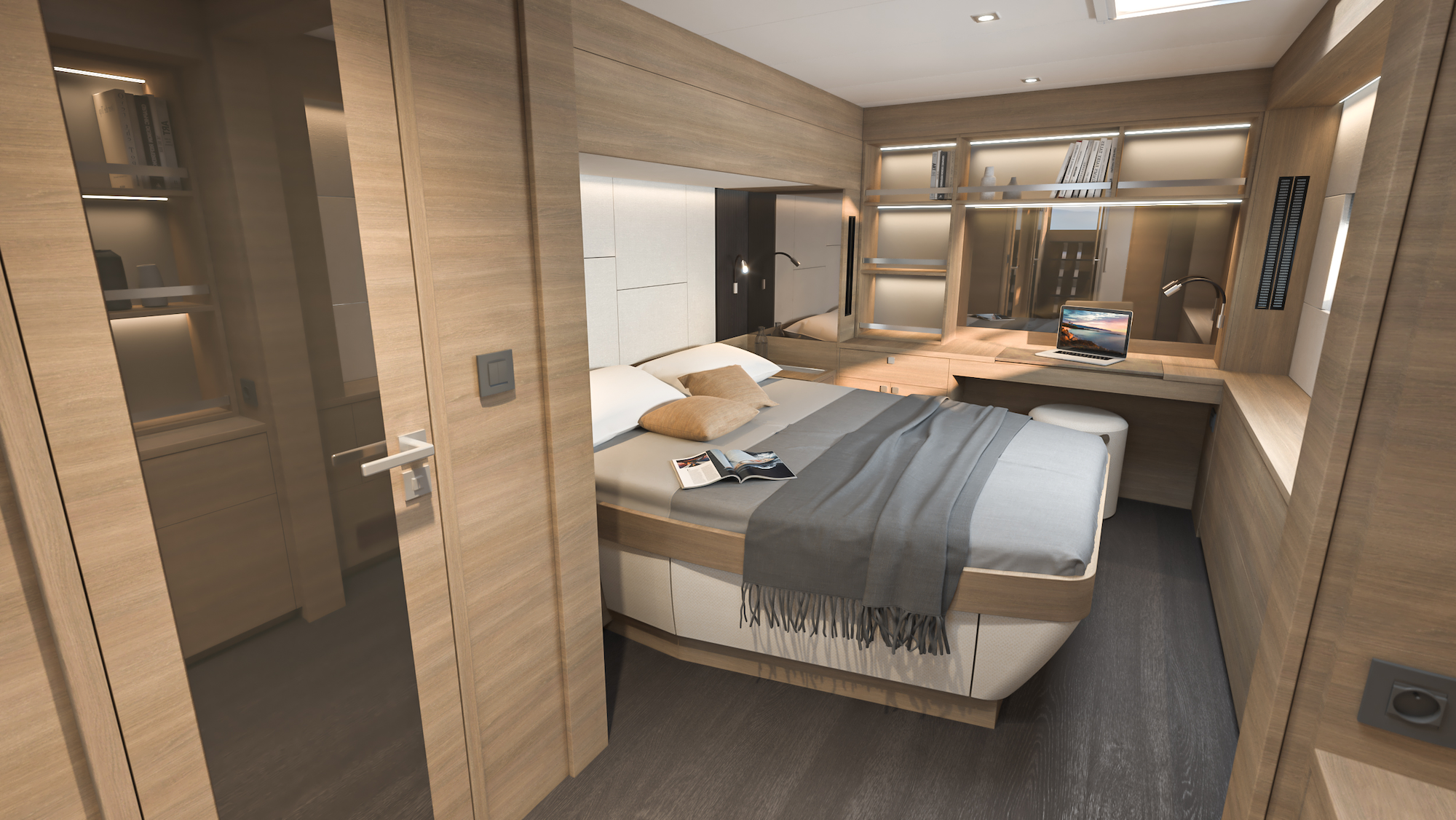 When it comes to layout, Quentin reveals that Lagoon is catering to diverse preferences, “We have two versions for this boat, a four cabin with galley down and a five-cabin version with galley up. The choice between these two layouts depends on whether you want more room in the saloon or in the hull. It’s really all about the owner’s choices.”
