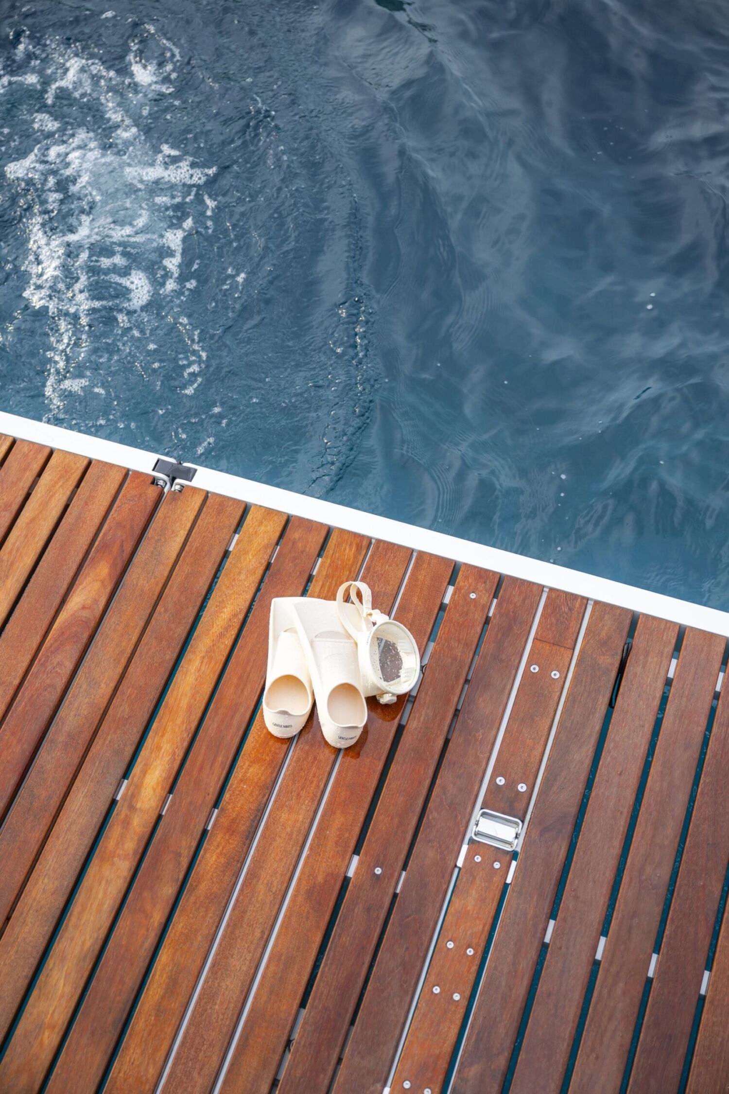 “I wanted a big, spacious saloon that you could see through for transparency. I wanted it to feel like a home, like a floating apartment. I thought regarding the kids, on the 42 specifically, we can steer the boat from here on the same level, it’s not a separate area … and the entire thing can be enclosed without it being a visual and physical barrier,” said Lara.