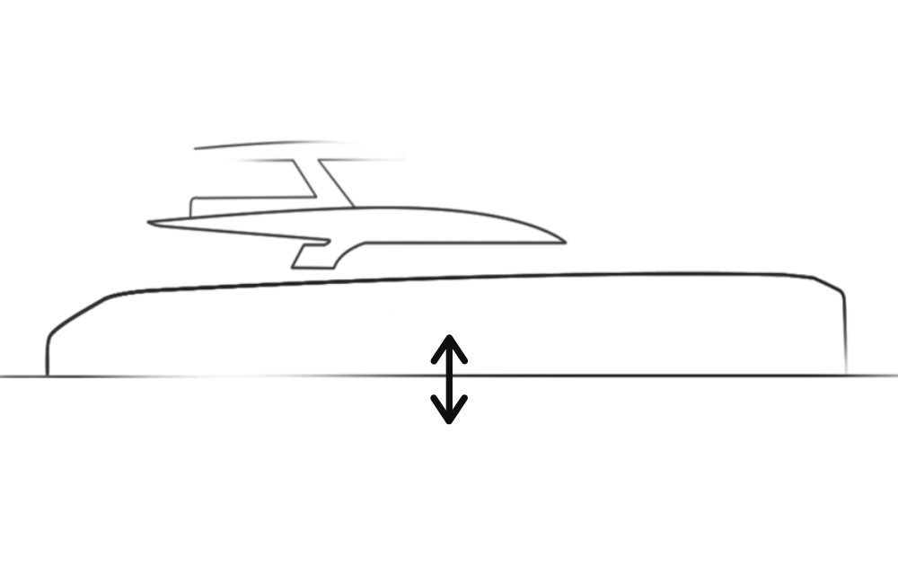 • Optional hydraulic platform creating a private beach platform on the outboard side of the hull
