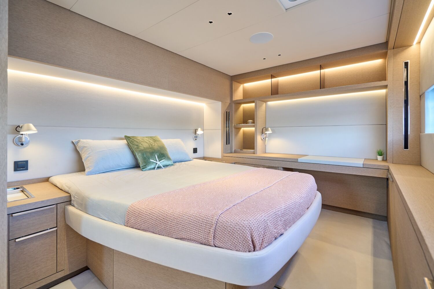 - Upgraded upholstery for Sunlounge pads for aft sunbathing area to Crevin Dolce IMP43