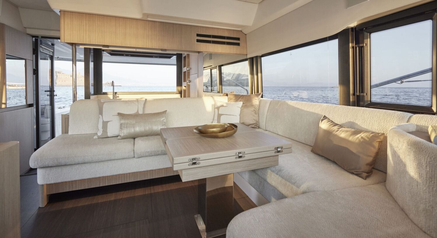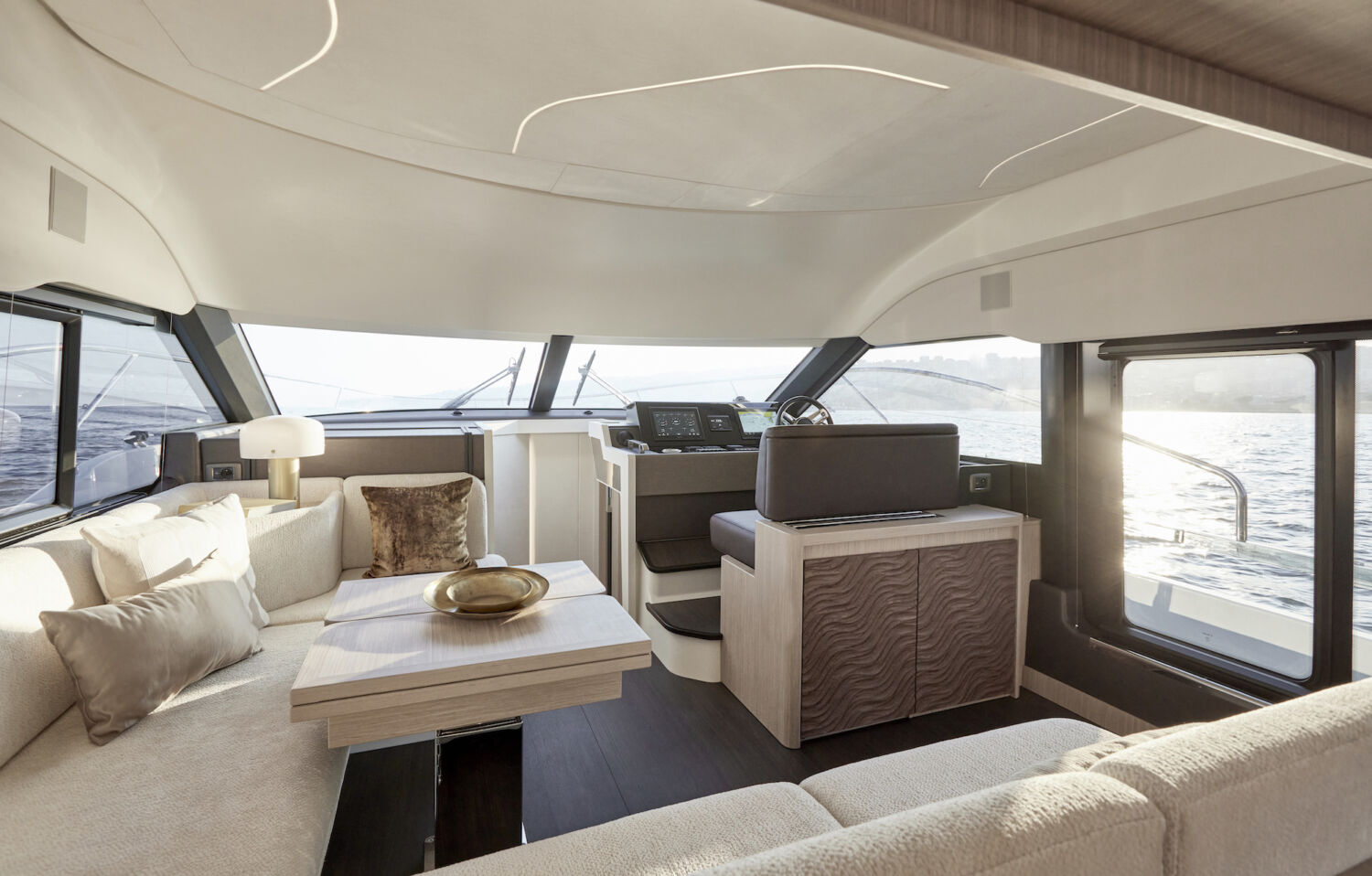 Introducing the PRESTIGE F4.9: a bold reinvention of yacht design that encapsulates the essence of luxury at sea. Redefining both exterior and interior layouts, the F4.9 stands as a testament to elevated comfort, where cherished moments with loved ones are savored against the backdrop of the ocean. The hallmark OceanView galley and meticulously positioned owner’s suite define the F4.9’s distinctive character. Inspired by the fluidity of water, the vessel’s elegant hull design seamlessly merges with the polished living spaces, bathing them in natural light. Meticulously crafted curves imbue the F4.9 with softness, refinement, and power, creating a harmonious blend of form and function. With reimagined furnishings and an array of carefully chosen materials – from natural stone to sculpted woodwork – every detail is orchestrated for unparalleled onboard comfort. Designed by Garroni Design, the F4.9 sets the stage for future F-Line models, promising even greater comfort and a level of finish that transcends expectations.