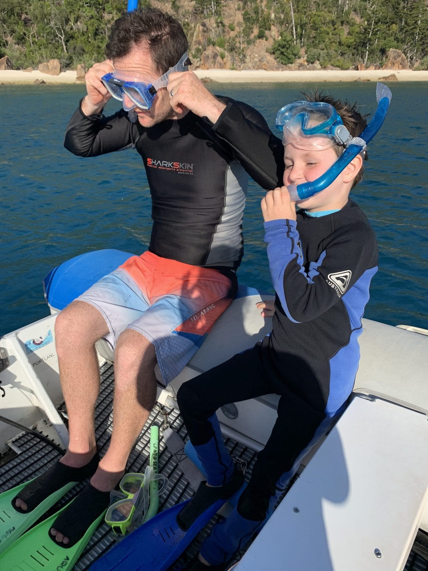 On another mooring, we went ashore for a wander on the beach looking for treasures, ran around and kicked the footy. Being the nice gradual sandy slope into the water, Spencer was a bit keener to snorkel around. From what I have been told the eastern side of Island has better snorkelling post-Cyclone Debbie, but for now this was a nice easy swim Spencer was enjoying and couldn’t stop talking through his snorkel to all the fish.